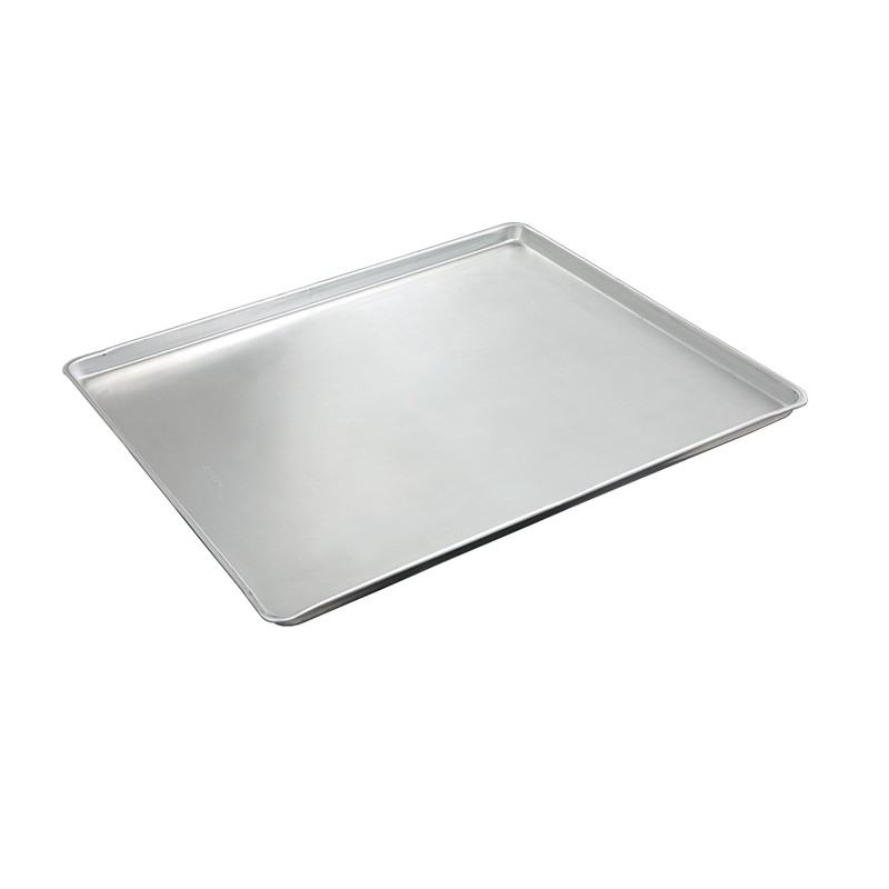 Assadeira plana lisa estampada em material alumínio com espessura de 1,00 mm, para acondicionamento e cozimento de massas alimentícias.