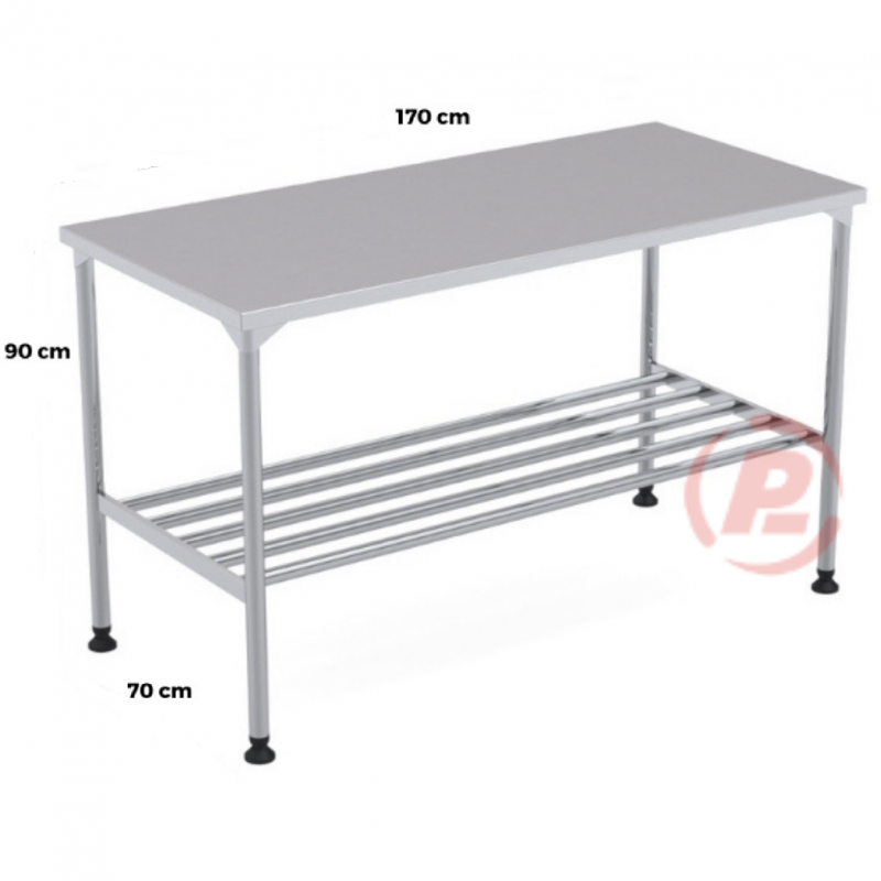 Mesa Tampo Liso 170cm Inox 304 Com Grade 170x90x70 – M304/17G