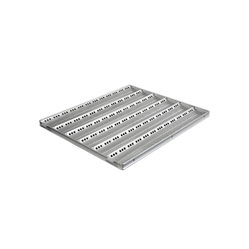Assadeira ondulada perfurada em alumínio com janela, com 06 canaletas longitudinais, engate para fornada de 30 pães francês, para acondicionamento e cozimento de massas alimentícias